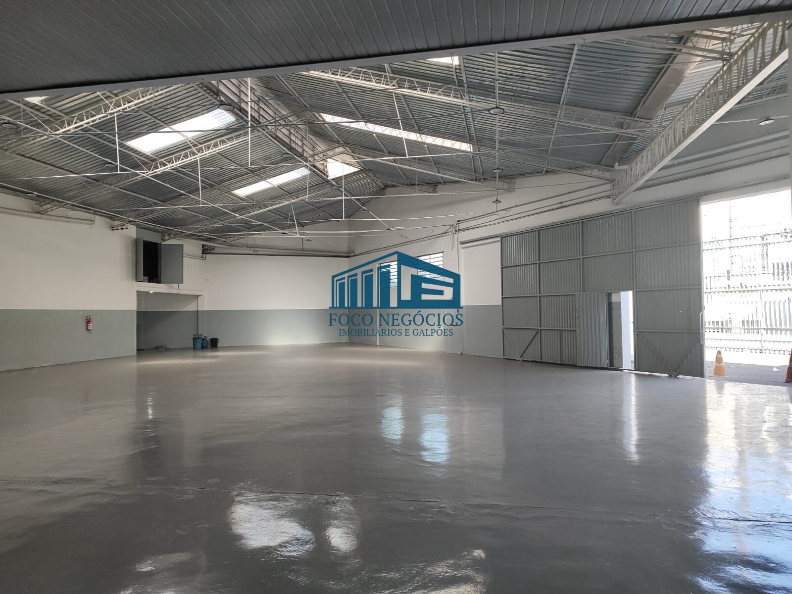 - Área livre no galpão: 700 metros