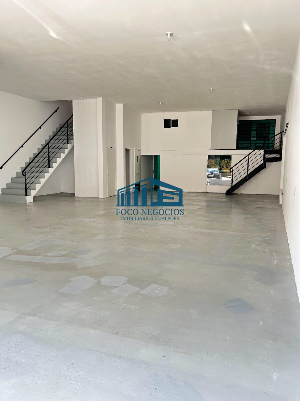 1º andar (180 m²): salão em vão livre (125 m²), 2 vestiários e sala para escritório