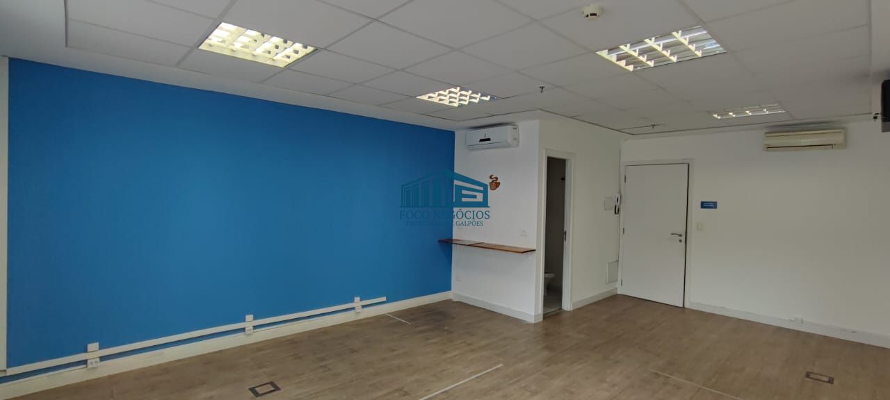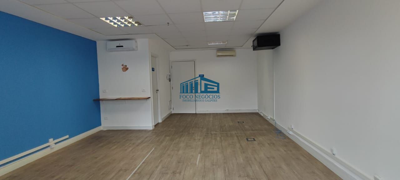 Sala comercial disponível para alugar, com 42m², localizada na Vila Andrade, São Paulo. A sala possui forro de gesso, luminárias, piso elevado e laminado, ar-condicionado, divisória de vidro e 1 vaga de garagem.