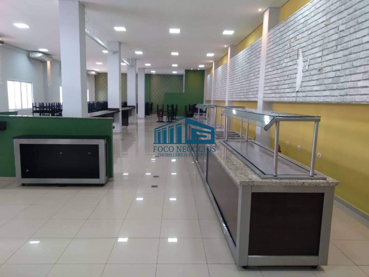 Restaurante industrial de 410 m², todo equipado e pronto para operar. Conta com buffet ilha quente e fria, coifa, freezer, mesas, cadeiras, além de banheiros feminino e masculino, e vestiário. Está localizado dentro de um condomínio de galpões logísticos com grande movimentação de funcionários.